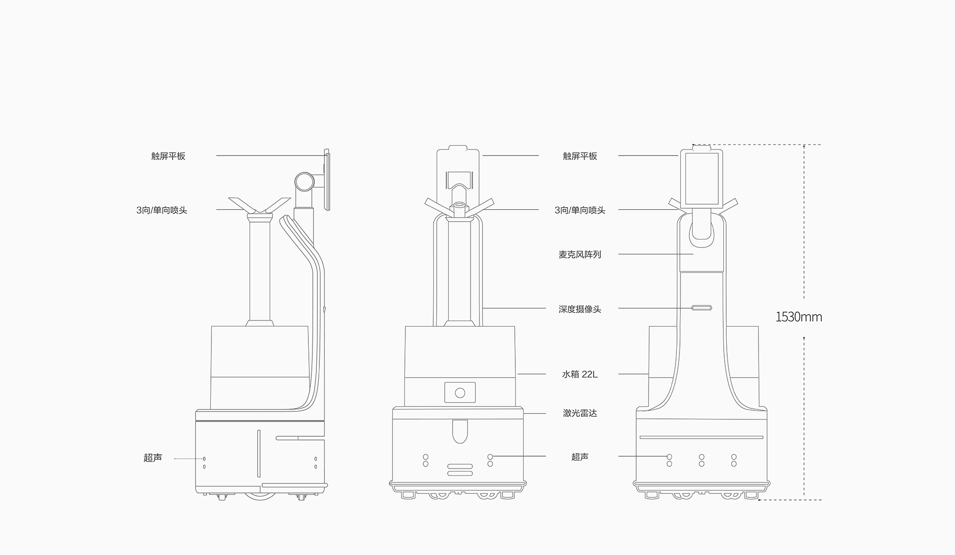 选配闸机、梯控模组,实现自主过闸机、自主乘梯等功能,极大拓展服务面积;更可更换不同雾化喷头,满足多样消毒需求